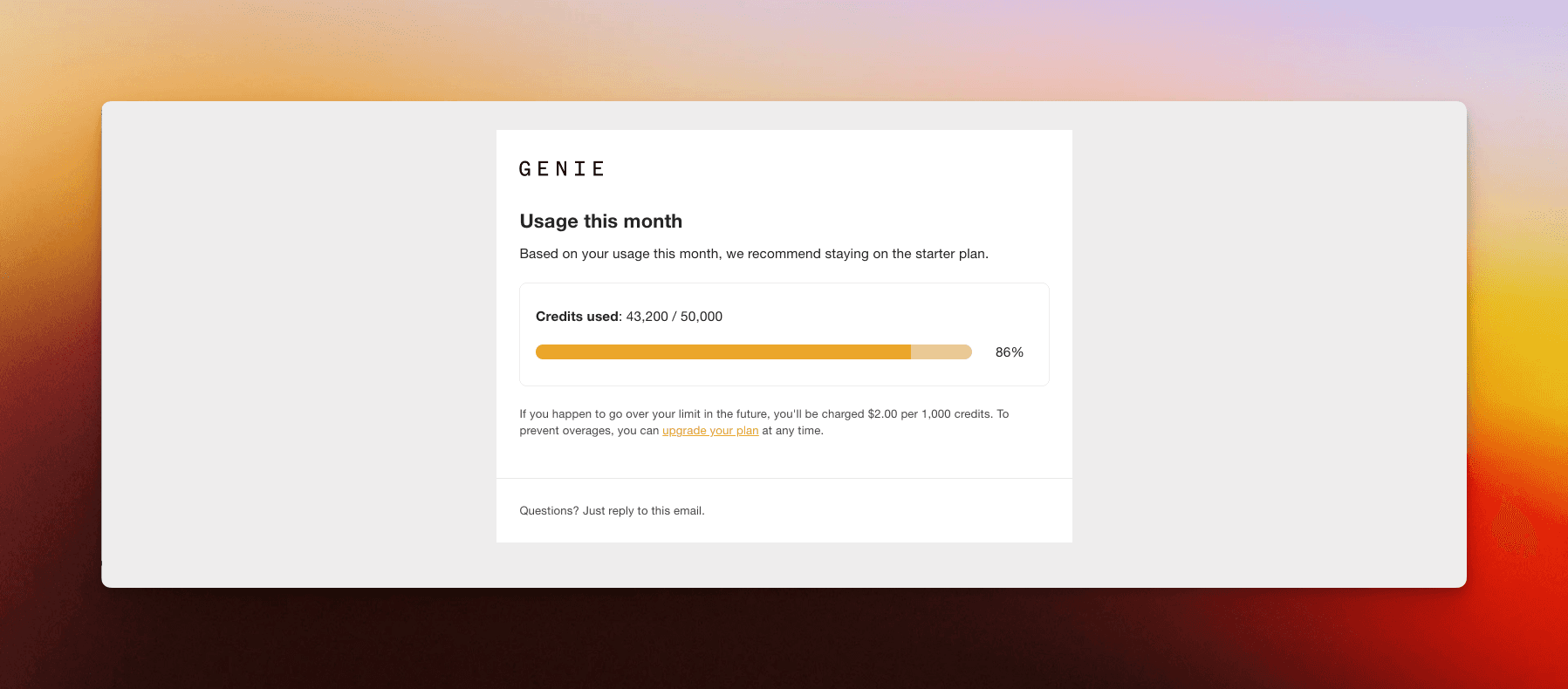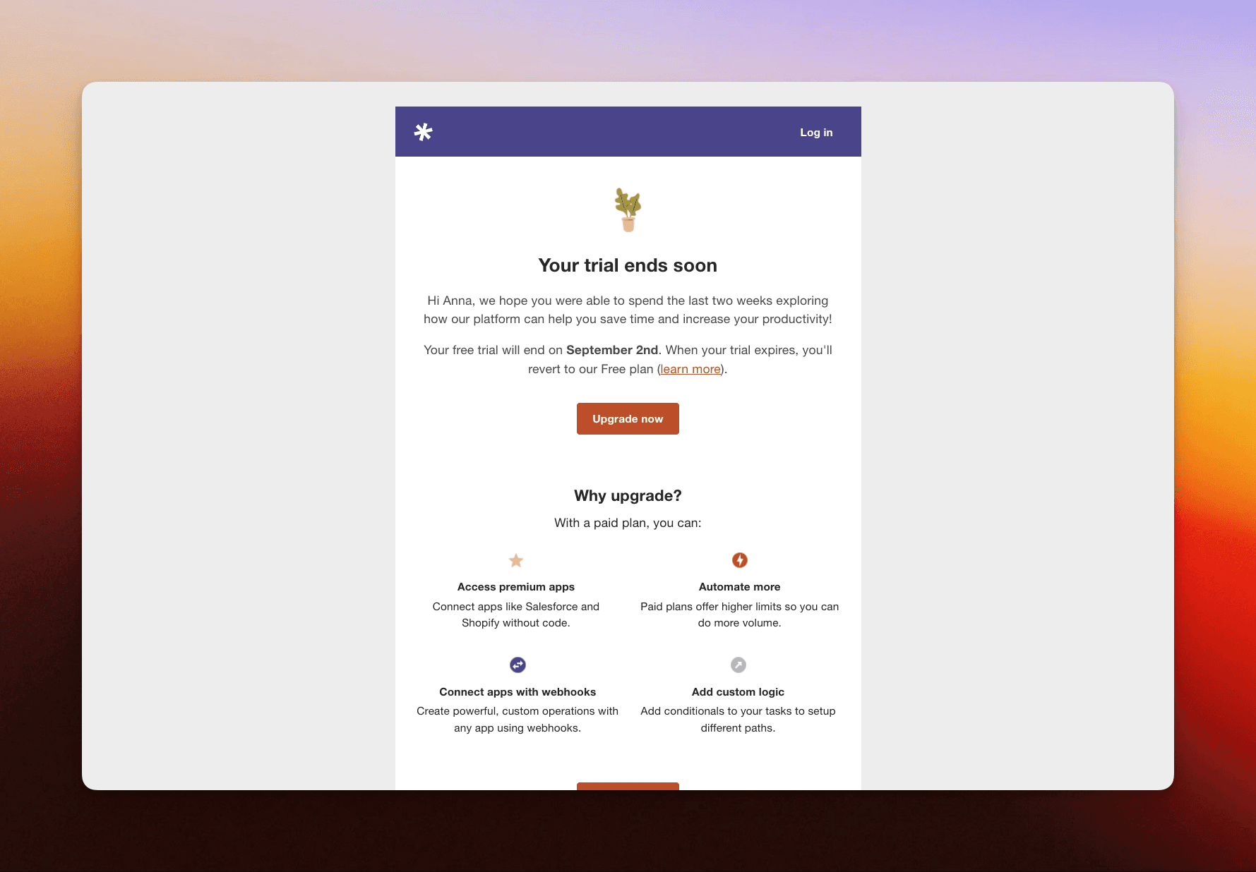Limit emails can be used to highlight trial limits and encourage upgrading.