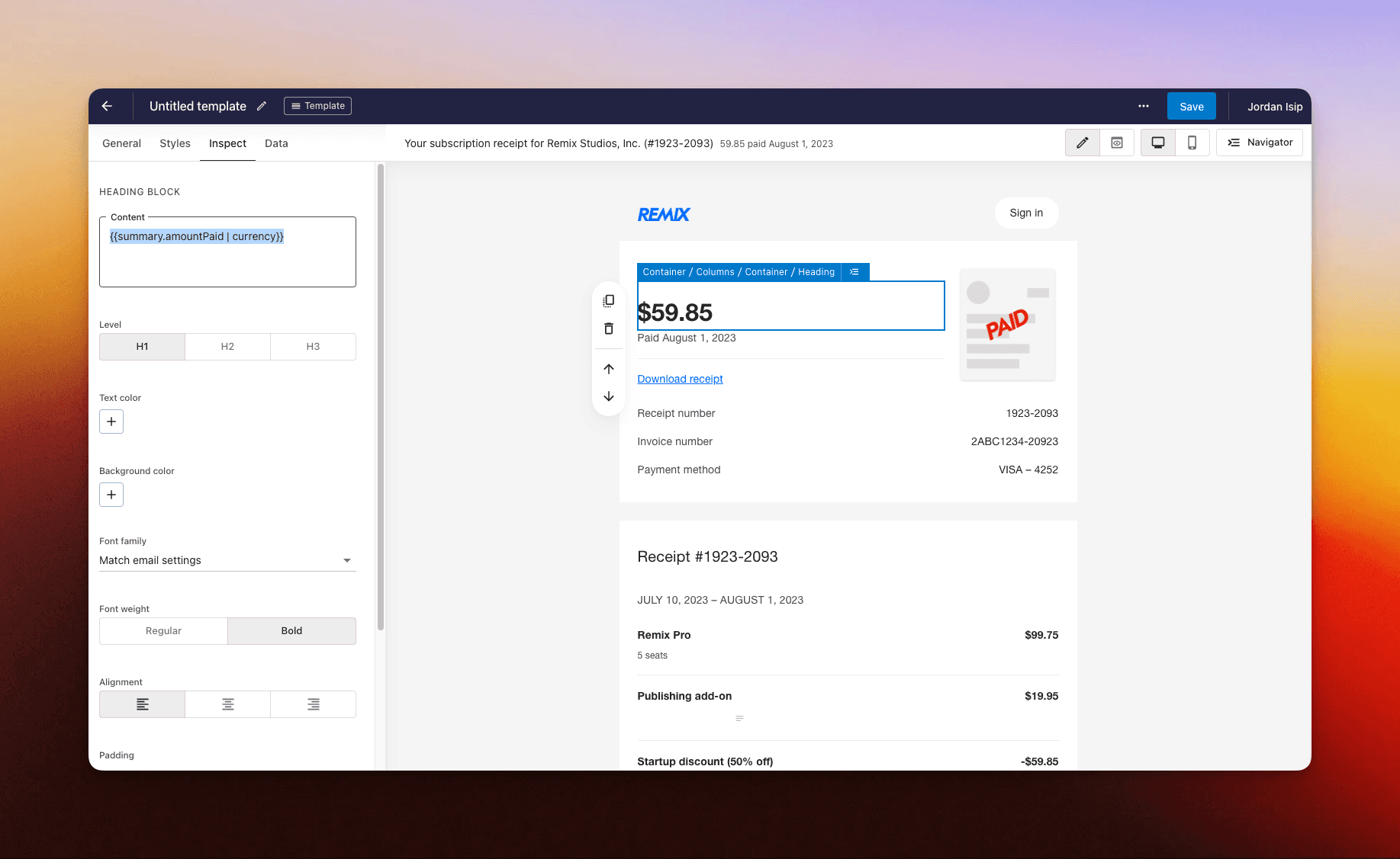 Waypoint’s dynamic template builder designed for building data-rich emails.