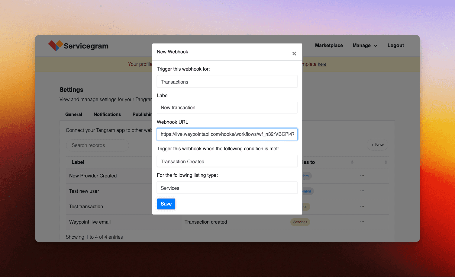 2. Setup webhook URL on Waypoint