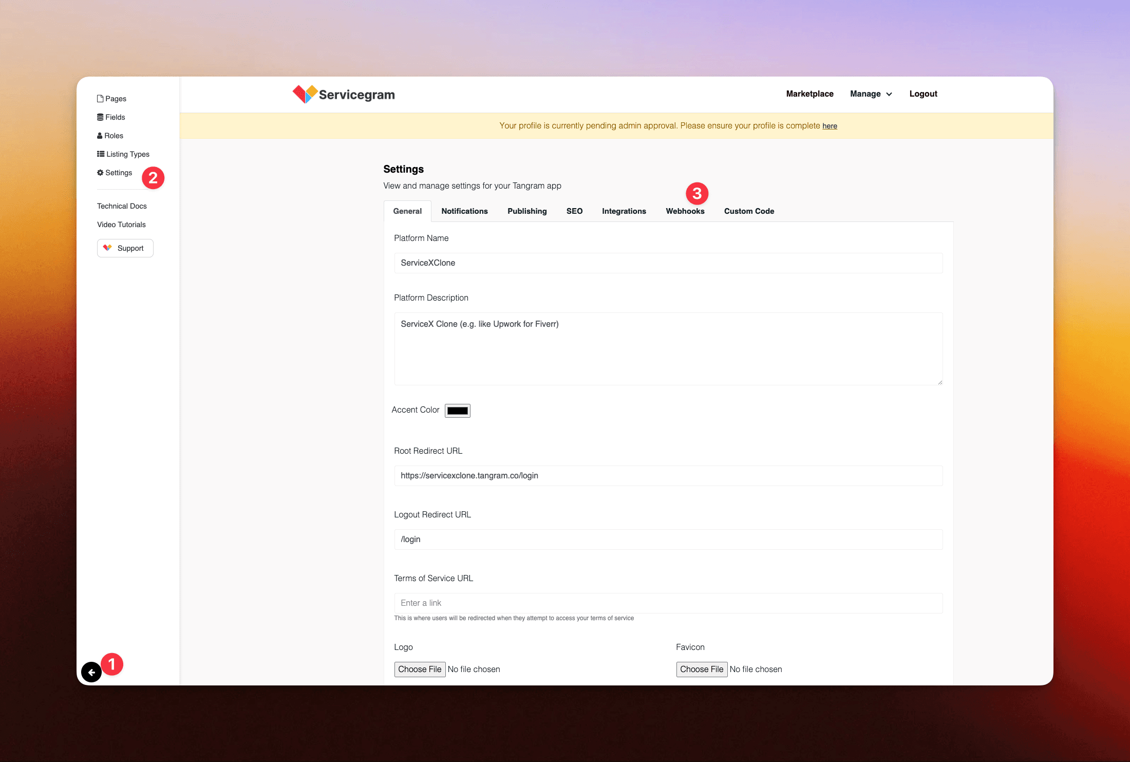 Now that we have the webhook URL, let's head over to our admin dashboard on Tangram and go to our Webhooks settings: