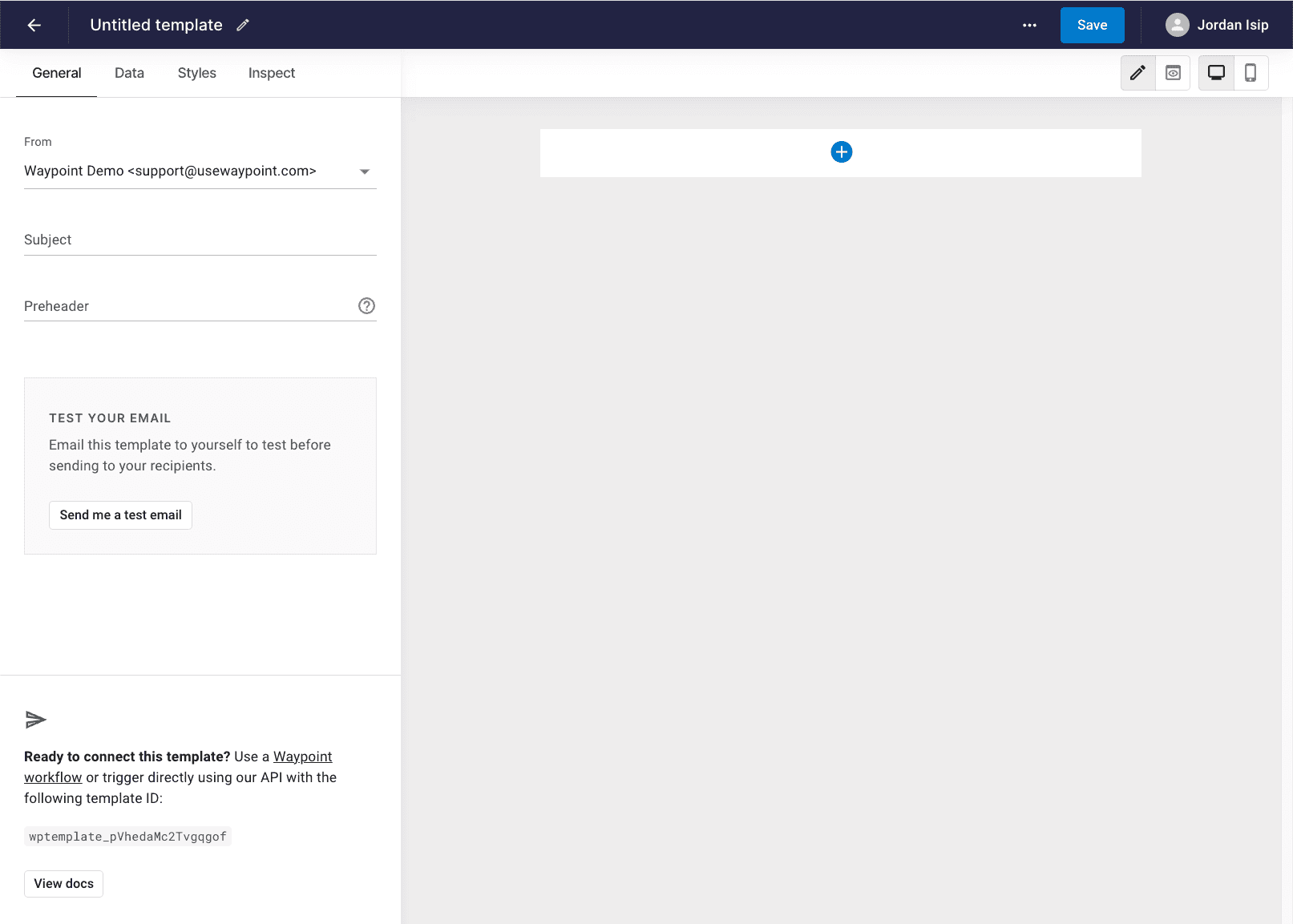 From your Waypoint workspace, go to the ‘Templates’ tab and click ‘new’ to start building a new email template.