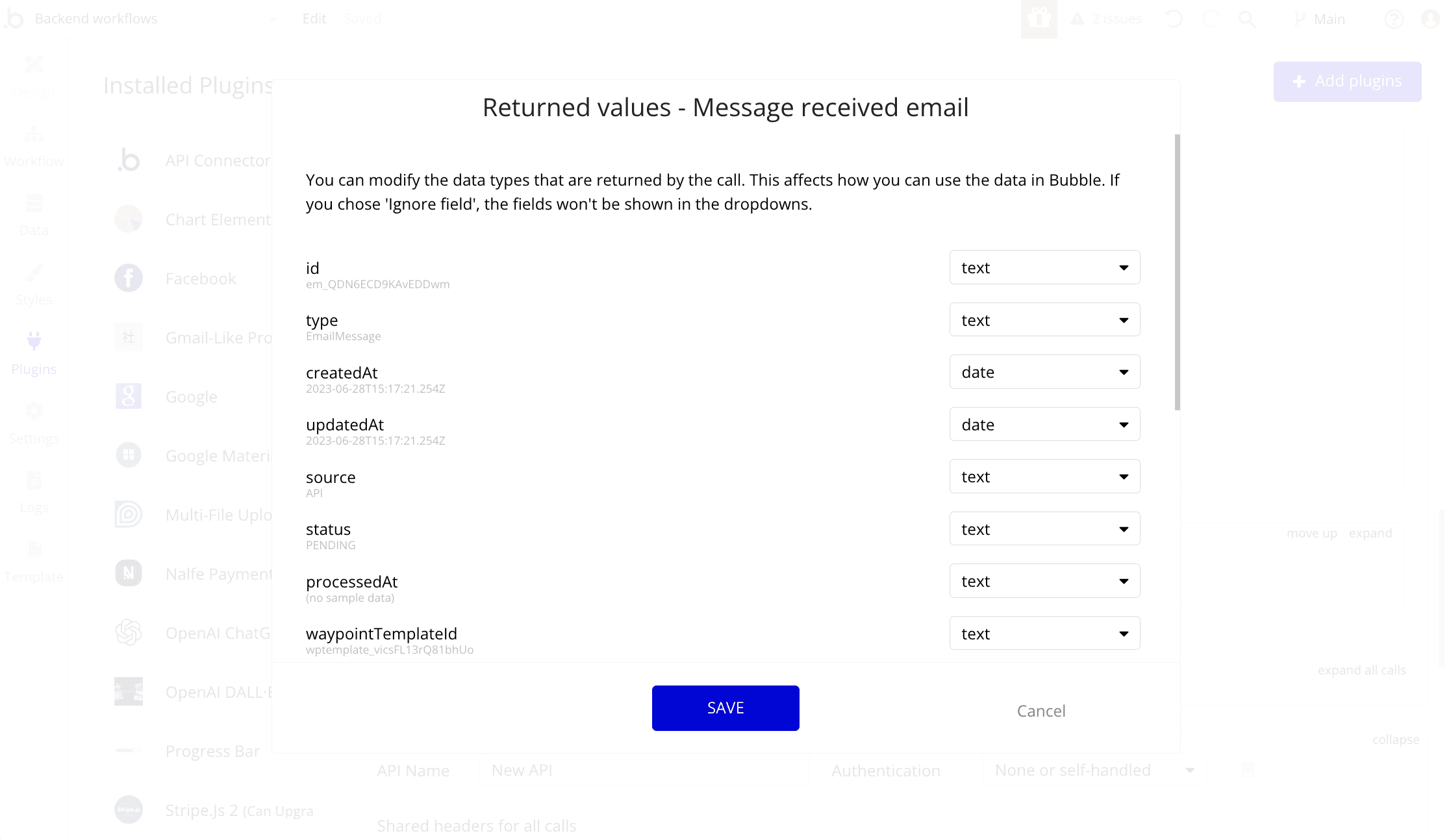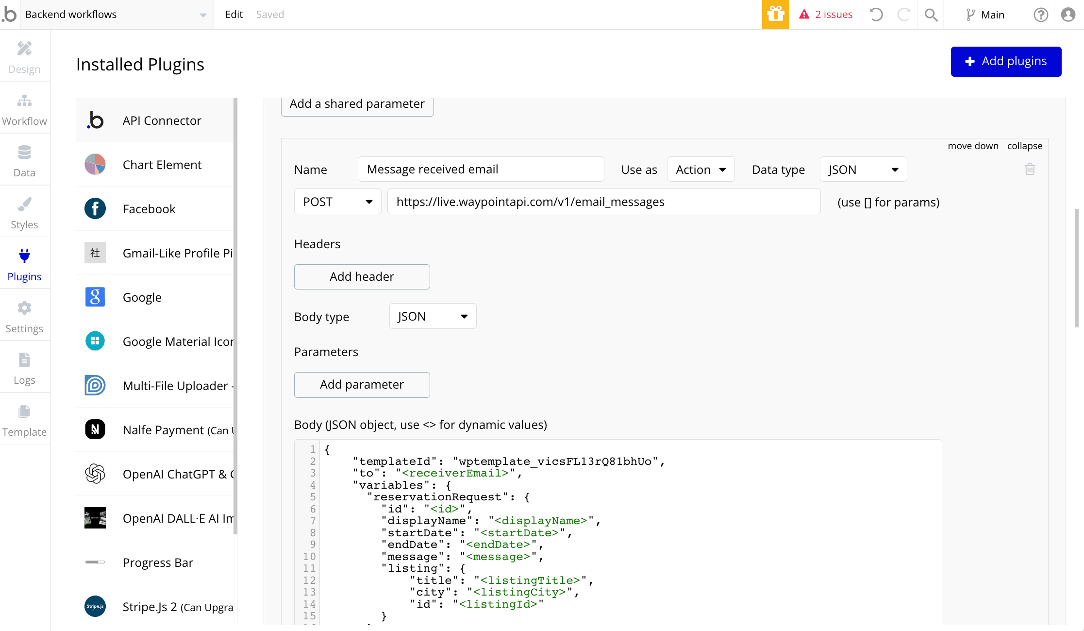 Step 4. Configure Bubble’s 'API Connector' to integrate with Waypoint's email API