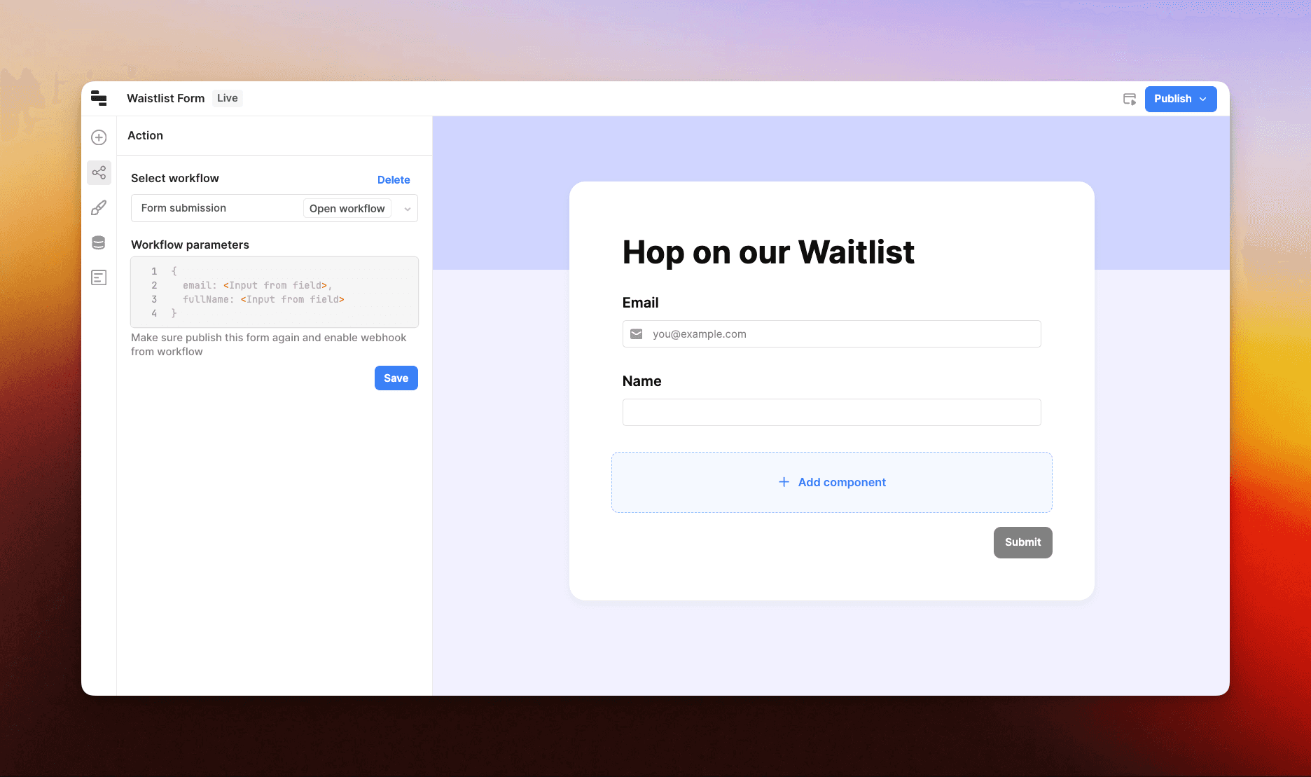 In this blog post, we'll look at our options for taking in Retool Form submissions for a hypothetical waitlist and then routing them through Retool Workflows to send a confirmation email.